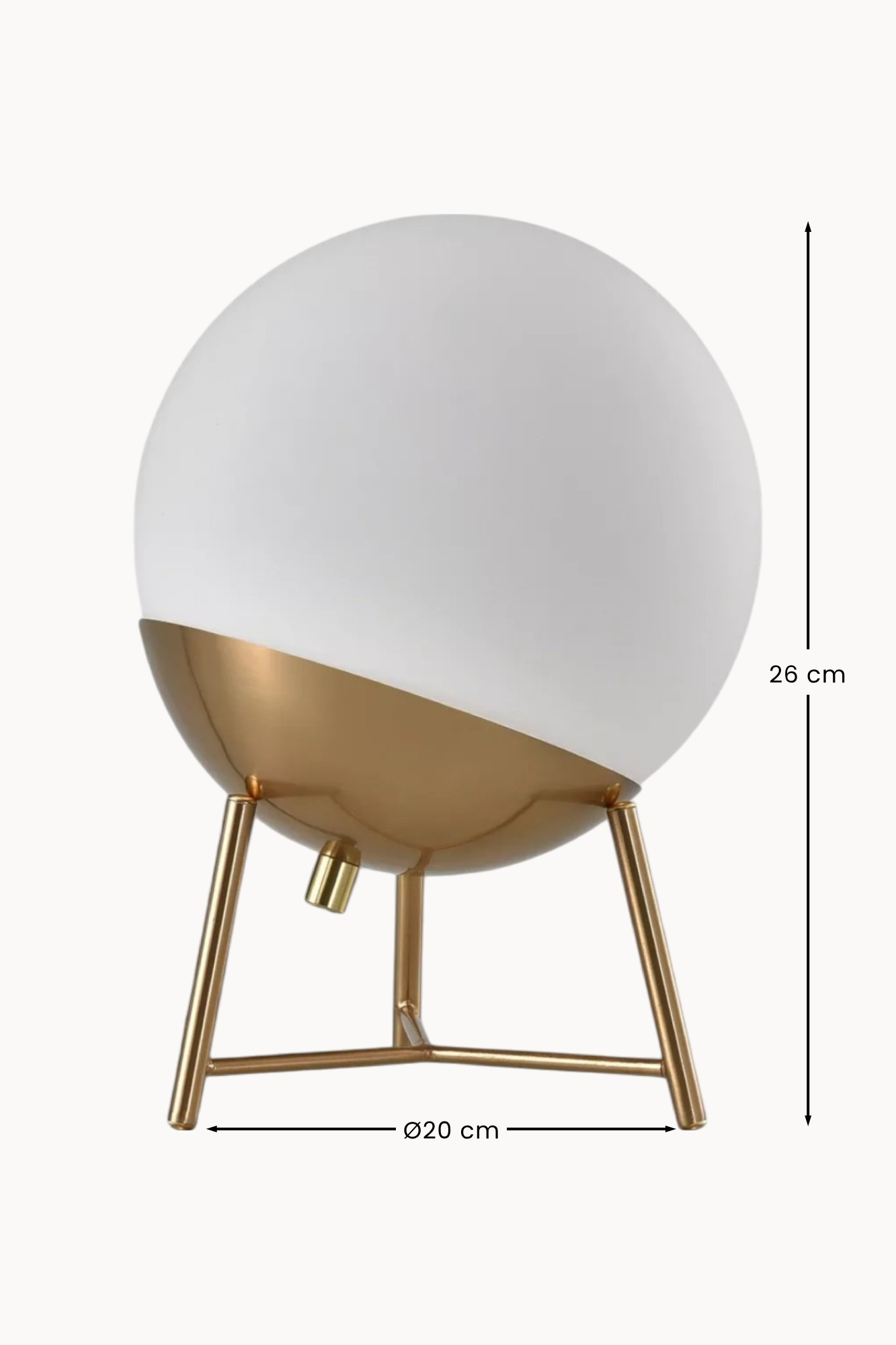 Chelsea Tischleuchte – Messingoptik – Weiße Glas-Kugel – 26 cm Höhe