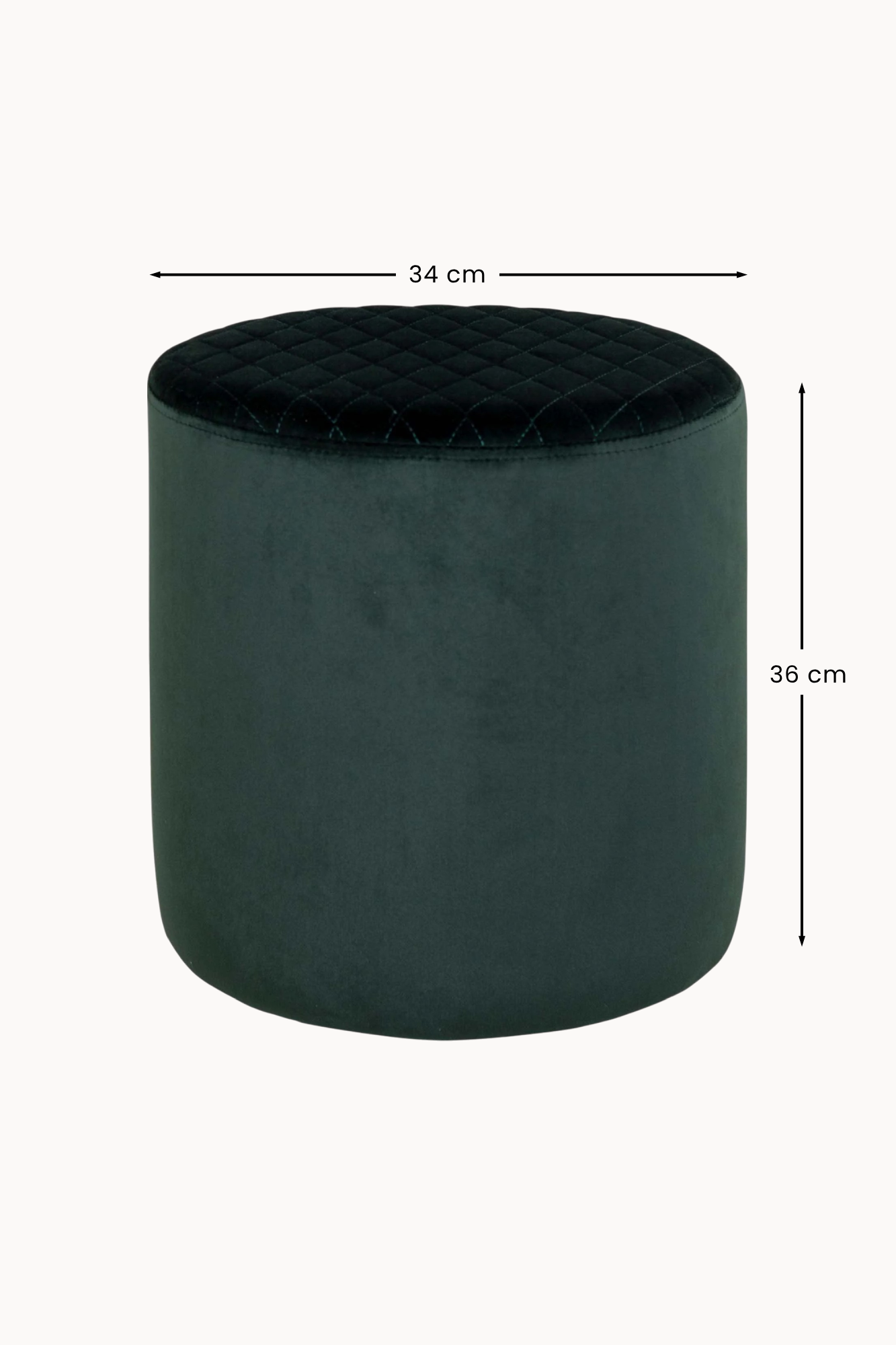 Ejby Pouf – Rund – Dunkelgrüner Samt – Sitzhocker 34x36 cm