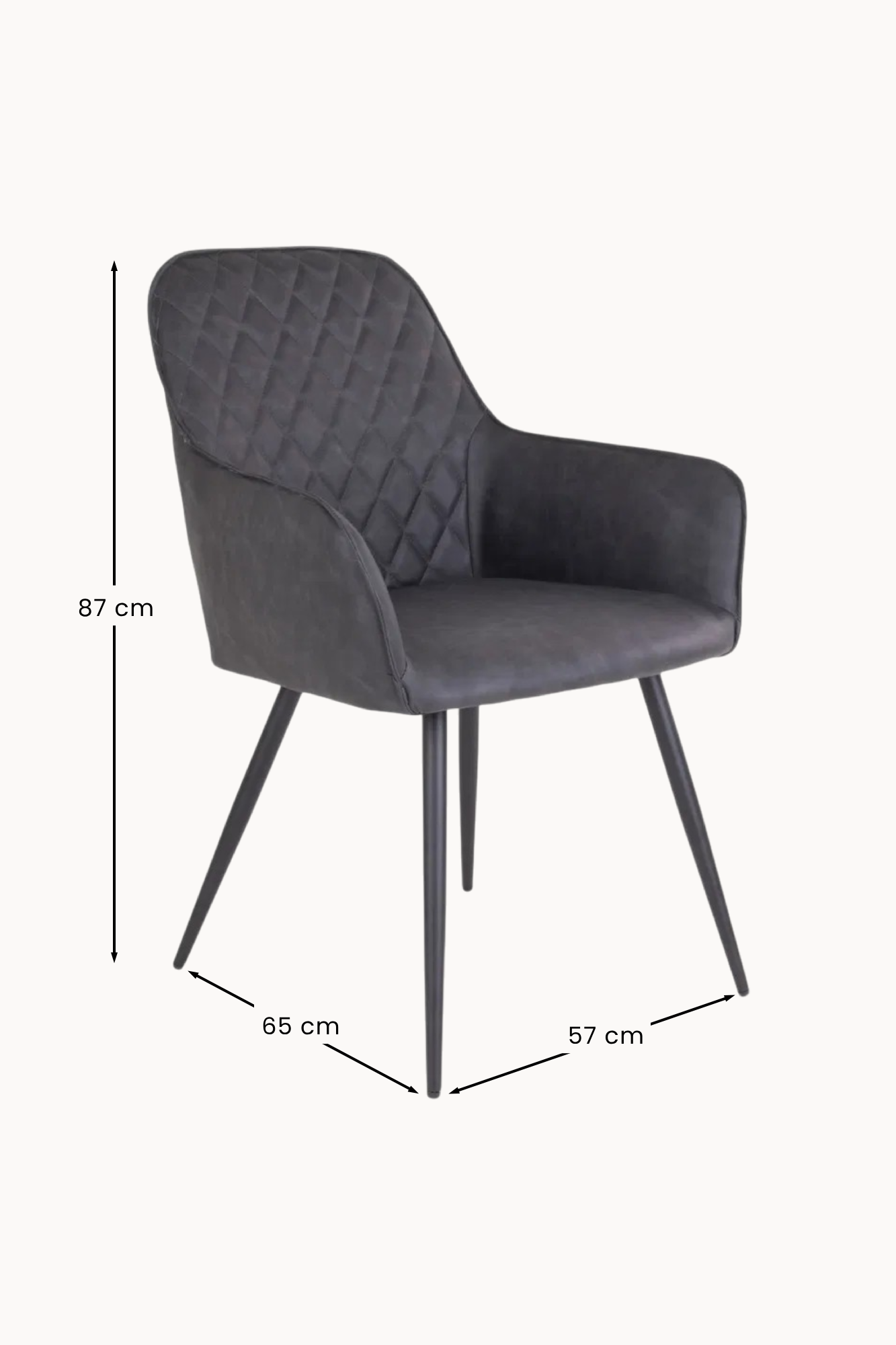 Esszimmerstuhl – Dunkelgraues PU-Leder, Schwarze Metallbeine