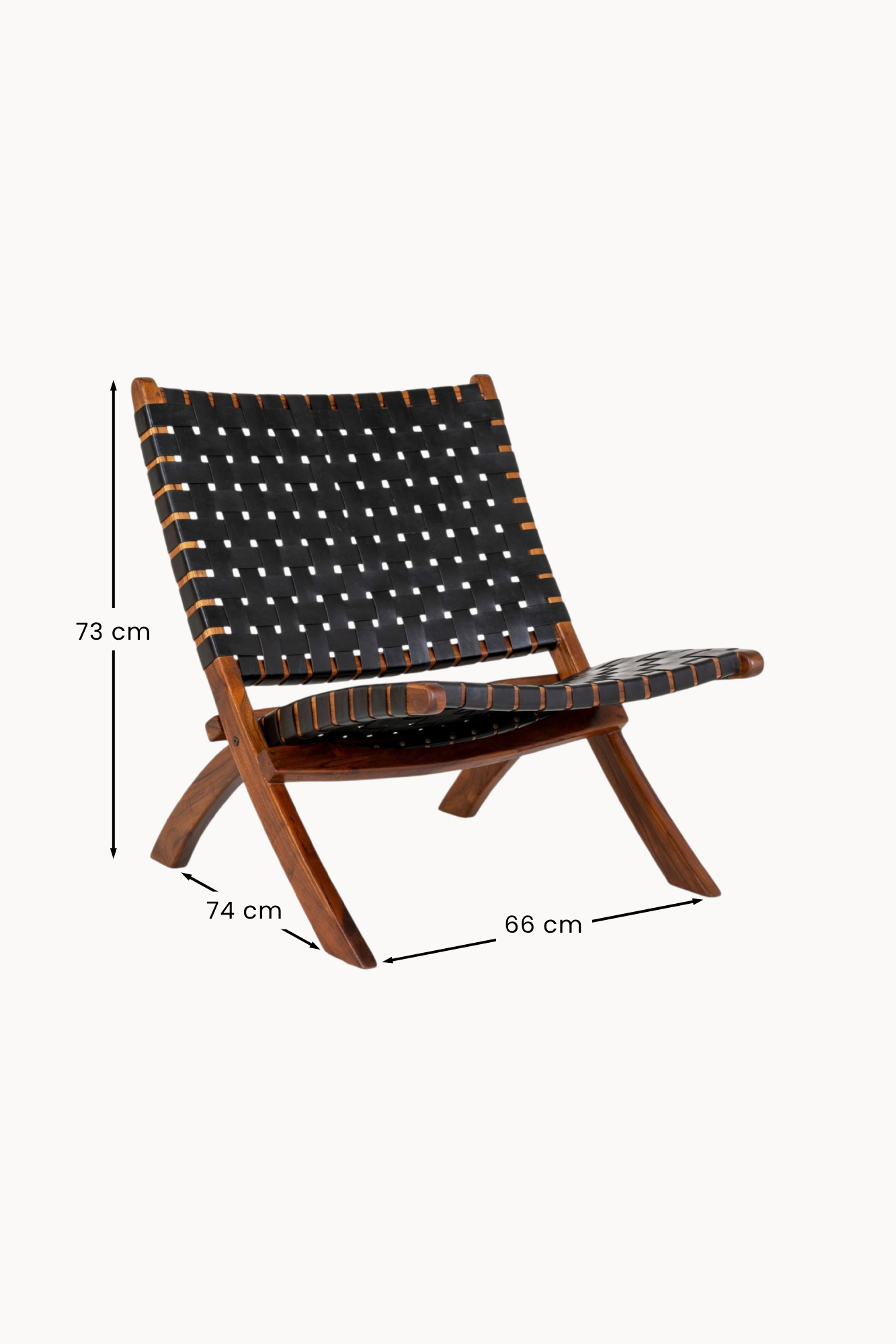 Faltbarer Stuhl – Schwarz Leder mit Teakholzbeinen – Modernes Design