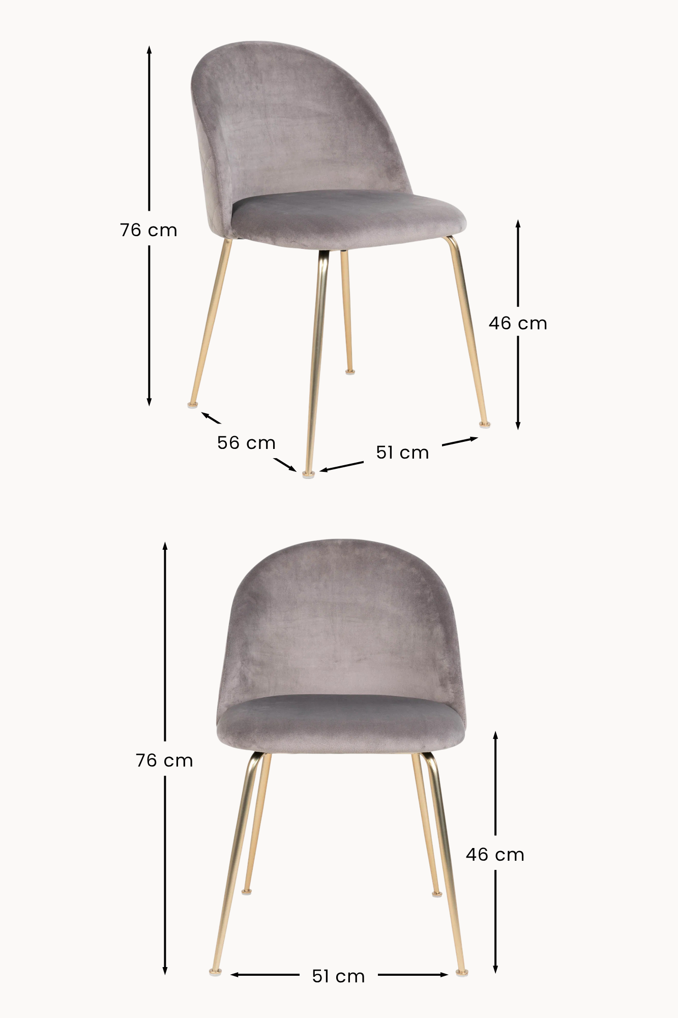 Geneve Esszimmerstuhl – Grau Samt, Messing-Look Beine (2er-Set)