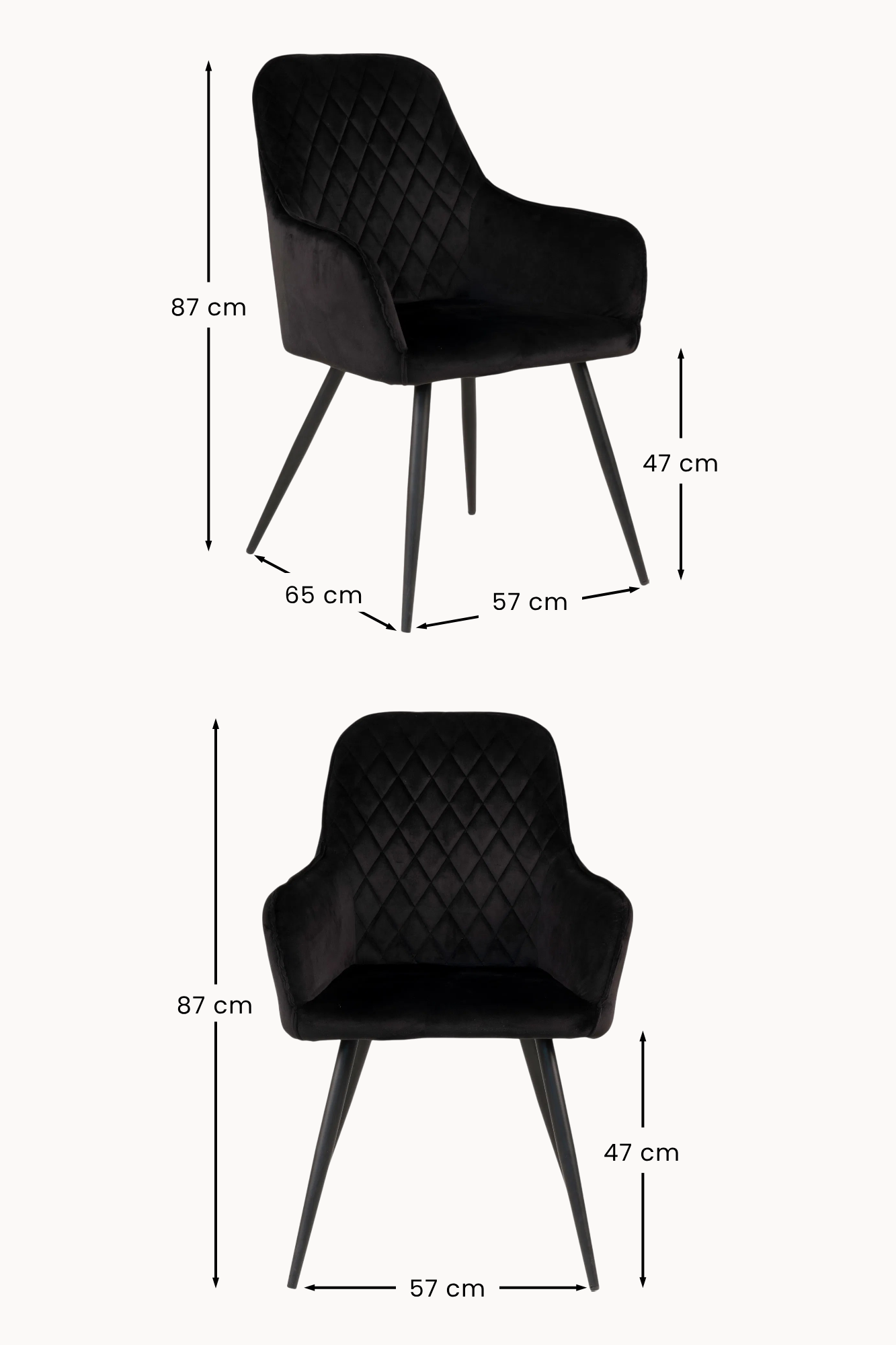 Harbo Esszimmerstuhl 2er-Set - Schwarzer Samt - Komfortabler Stuhl