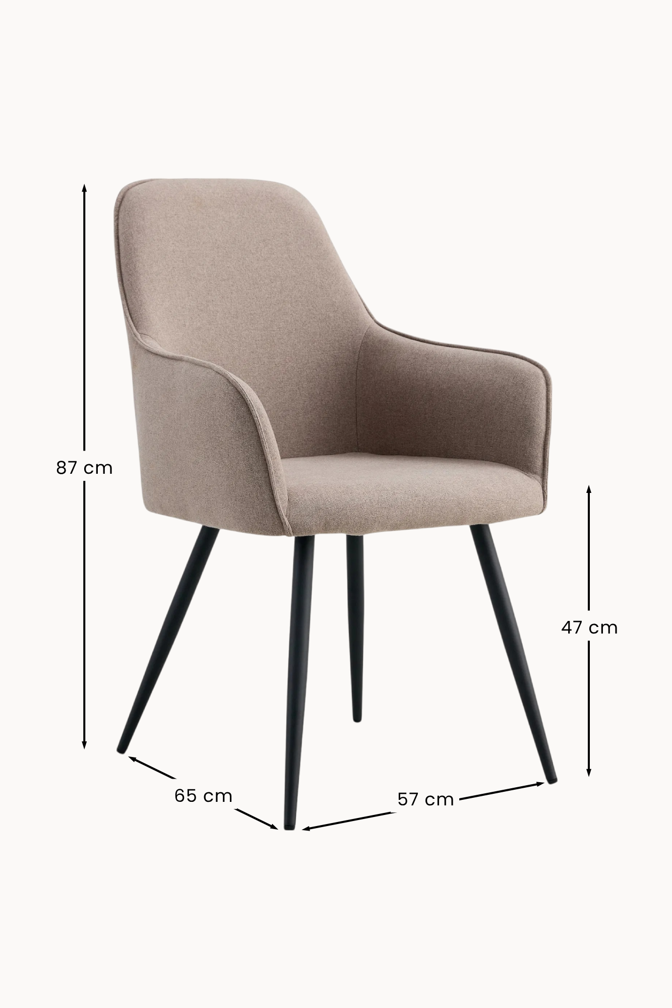 Harbo Esszimmerstuhl, 2er-Set – stoffbezogen in Steinfarbe, schwarze Metallbeine