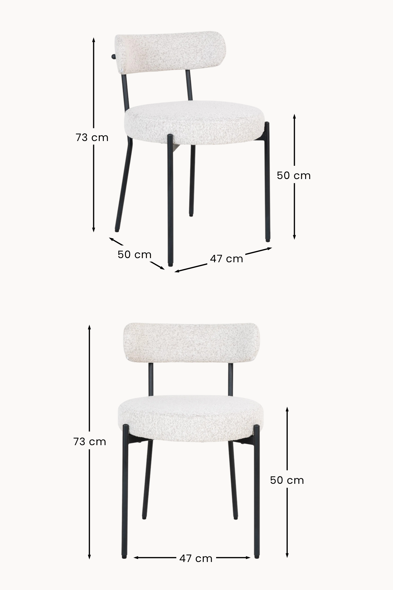 House Nordic – Esszimmerstuhl – weißer Bouclé – 2er-Set, schwarze Beine
