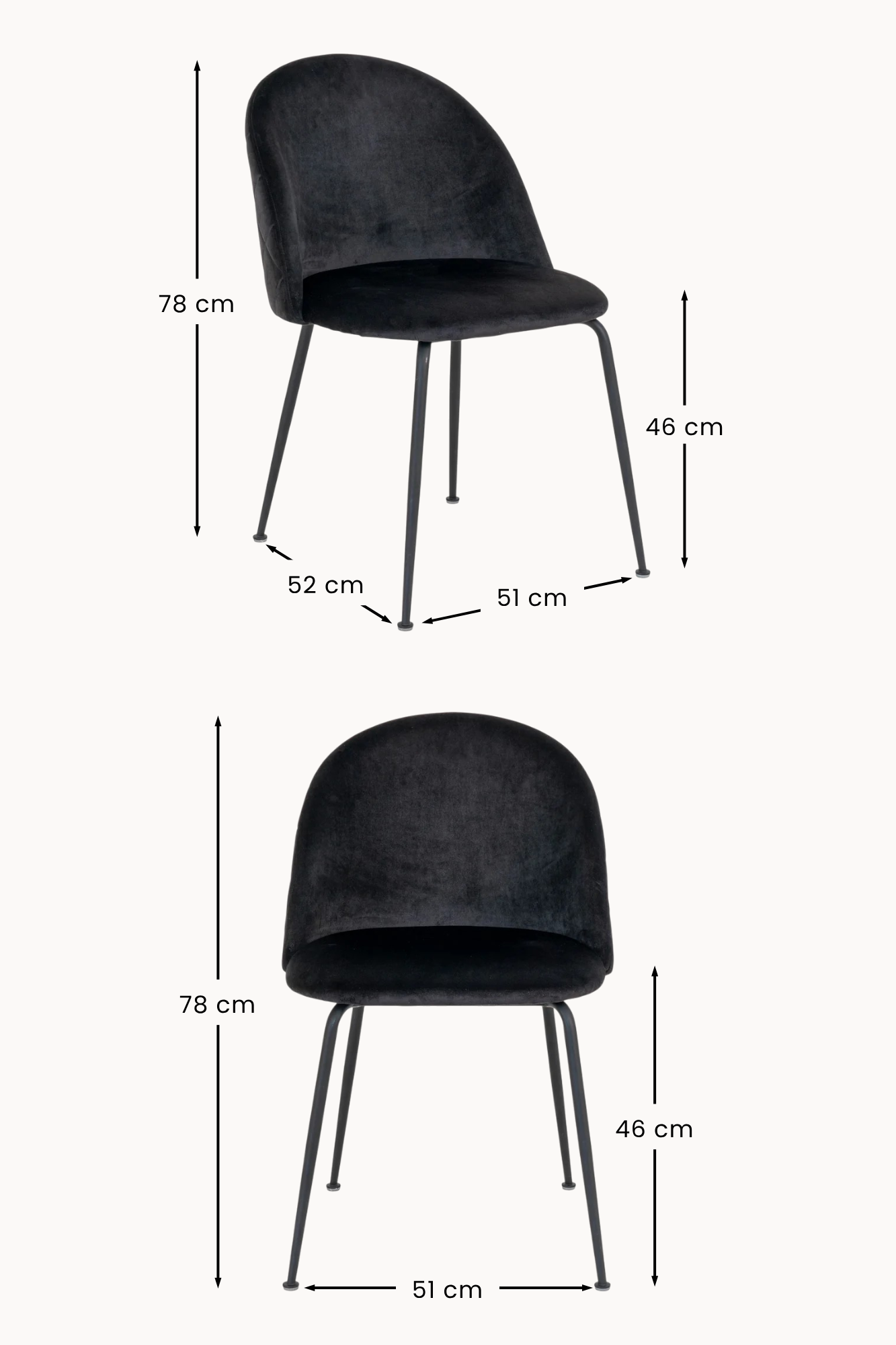 House Nordic – Genfer Esszimmerstuhl, 2er-Set, aus Samt und Metall, schwarz