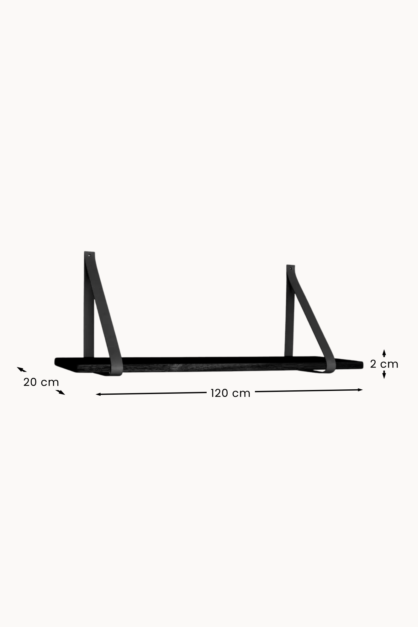 House Nordic – Wandregal Schwarz aus Gummibaumholz mit Lederriemen 120x20 cm