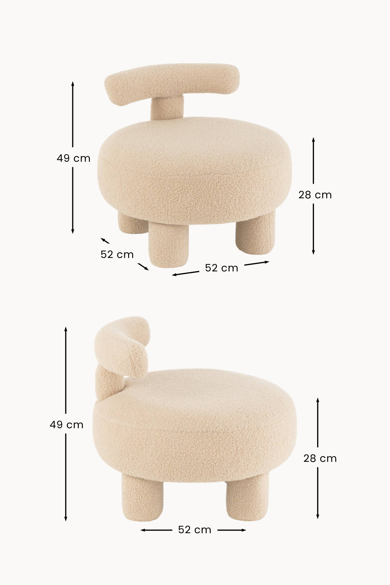 J-Line Hocker – Rund mit Rückenlehne – Bouclé Beige – 52x52x49 cm