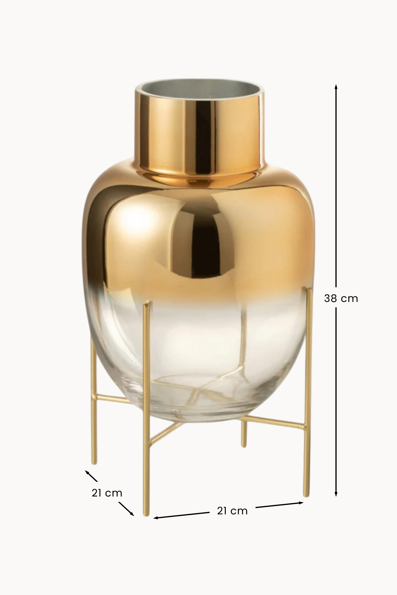 J-Line Vase Zylinder auf Fuß – Glas transparent/gold – 38 cm
