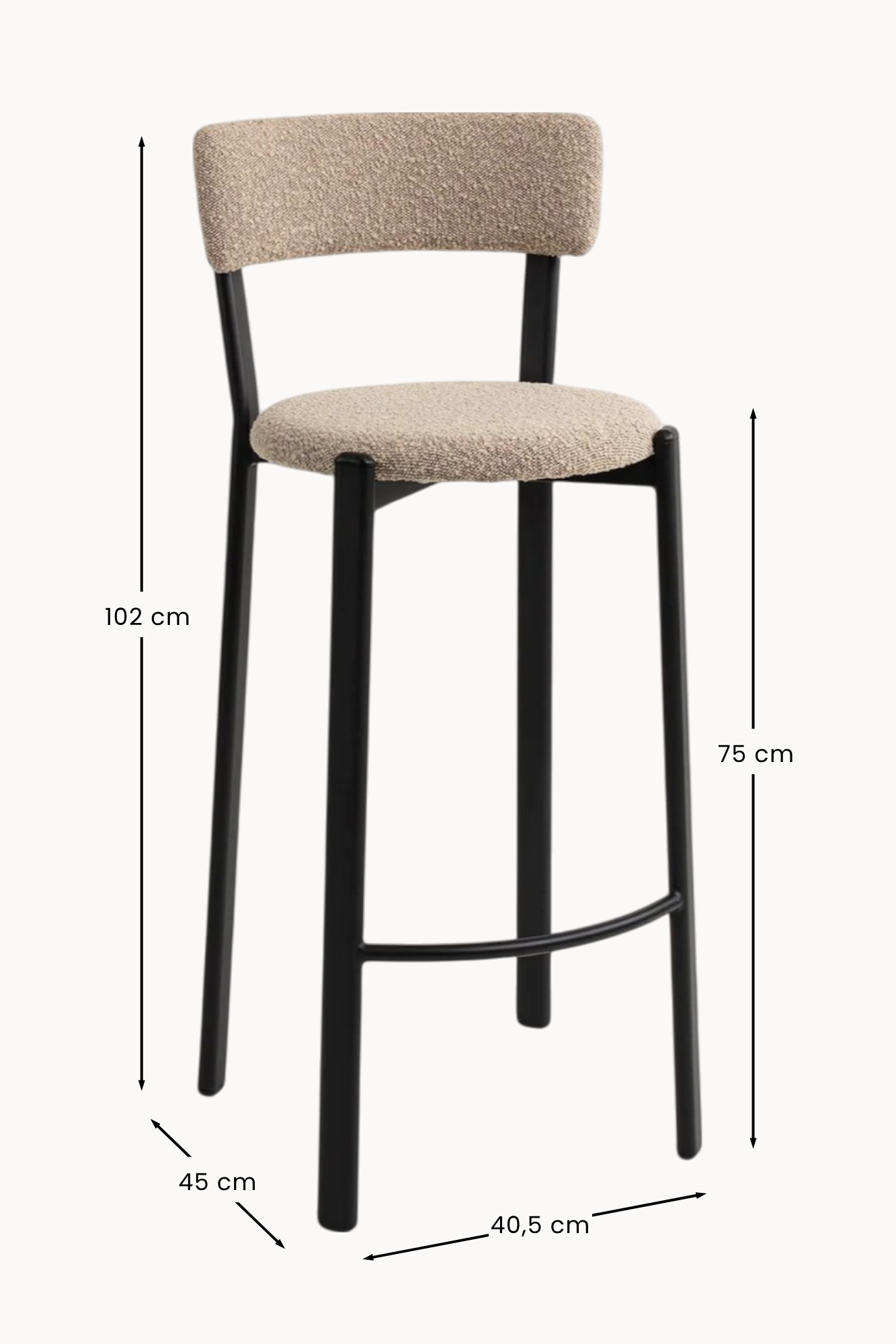 Jesper Home – Obu Barhocker – Bouclé Polsterung – Matte schwarze Metallbeine – 75 cm Sitzhöhe