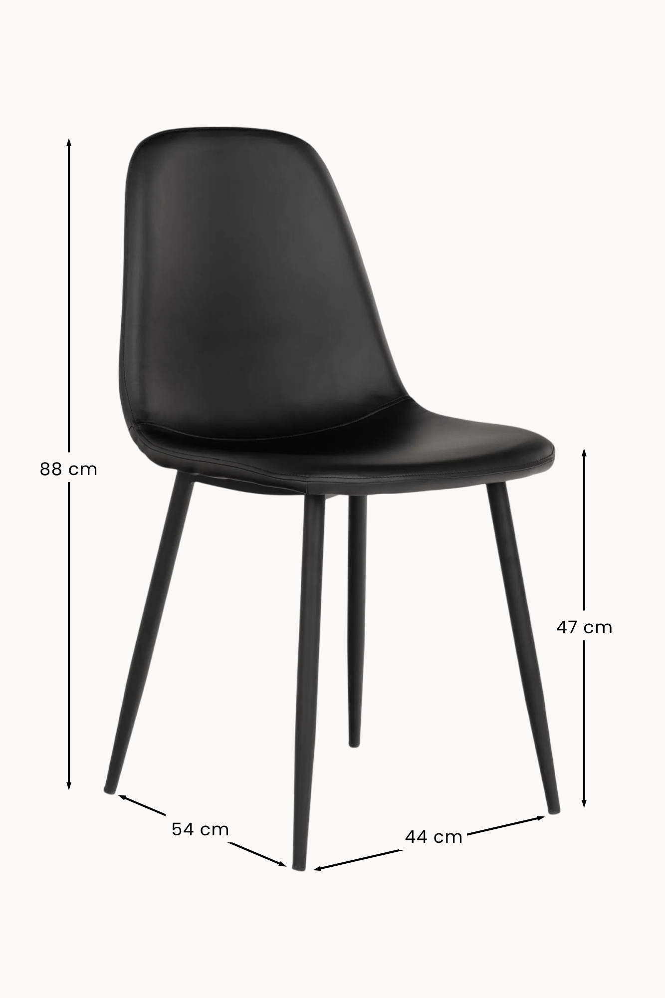 Stockholm Esszimmerstuhl – Schwarz PU Leder, Metallbeine, Modern, 88cm